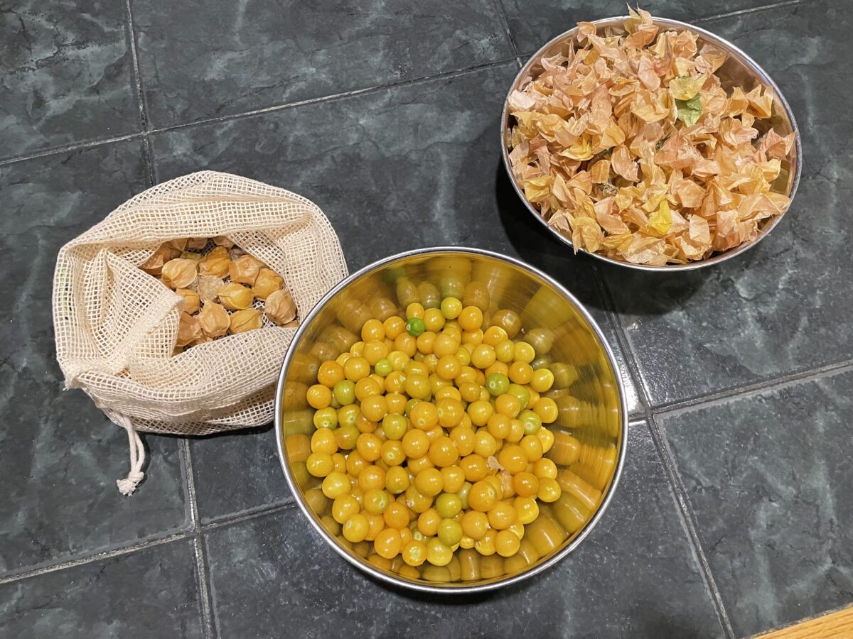 Ground cherries are the size of cherries but aren’t cherries. They look like shrunken tomatillos and taste a little sweeter.