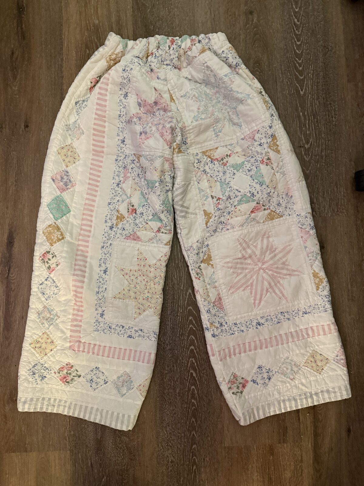 This past summer, there was a trend where people made pants out of towels to wear over their swimsuits. I figured as the weather slowly got colder and my jeans became less and less warm, this quilt would make the coziest pair of pants.