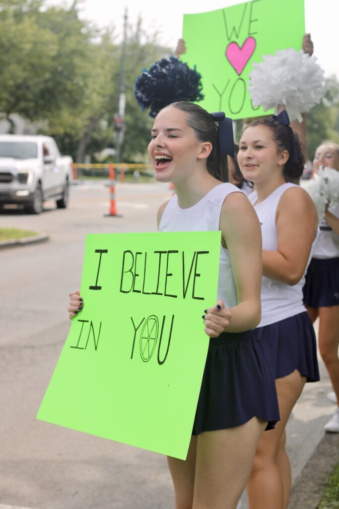 And in Granville, it seems, cheering the riders has become a rite of passage, heralding August with the bright green Pelotonia flags and posters – this year punctuated by orange and white cones that dot the streets during construction season.