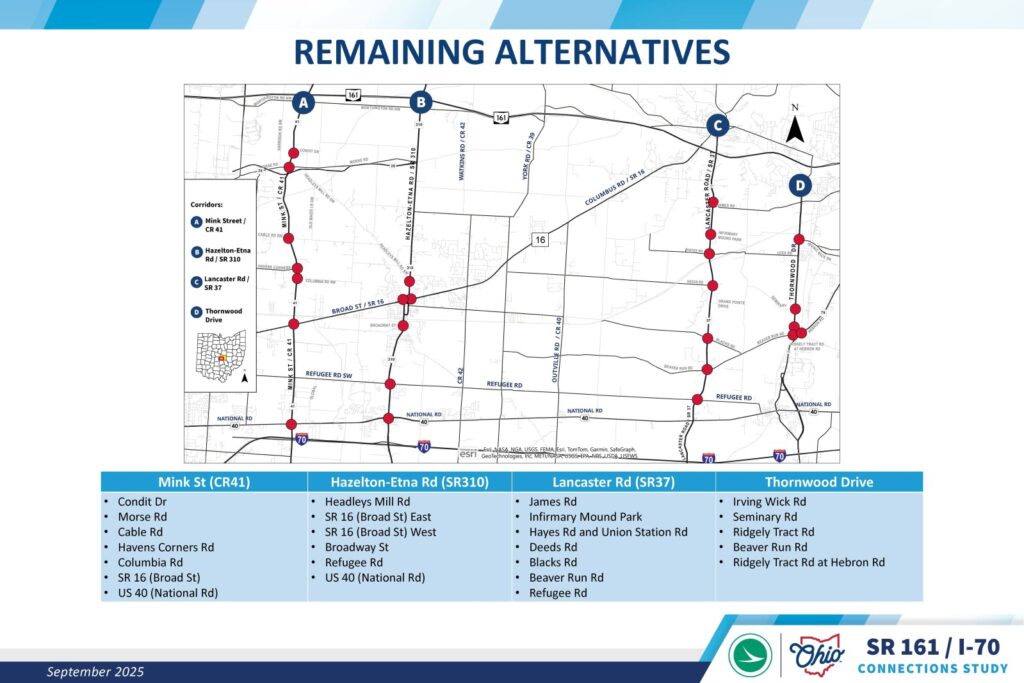 Instead, the crowd of mostly residents and public officials from western Licking County viewed a series of proposed turn lanes, roundabouts, traffic lights and roadway reconfigurations along these routes: