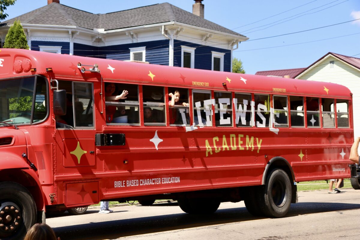 First, religious education must take place off of the school’s campus, and LifeWise educators must transport students from school to a nearby church partnered with the program. LifeWise school buses or vans are hard to miss with their bright red paint and LifeWise Academy in yellow lettering.