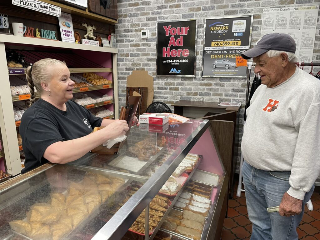 Every customer is important to the Jolly Pirate team, but what makes the shop next to the Ohio Central Railroad tracks special are the regulars who come in virtually every day for a donut and coffee. They sit at brown bar stools as they read The Advocate newspaper left on the counter for them and catch up with other regulars.