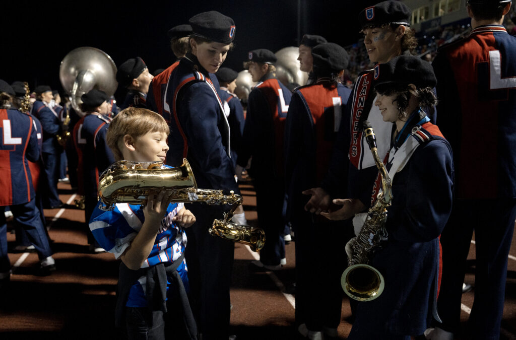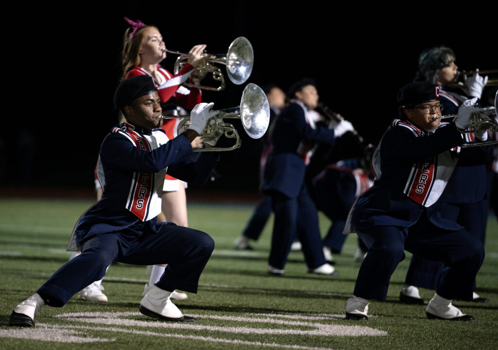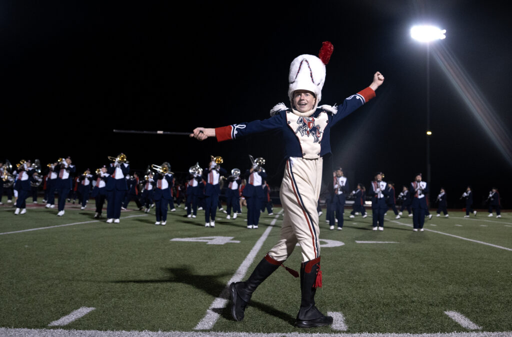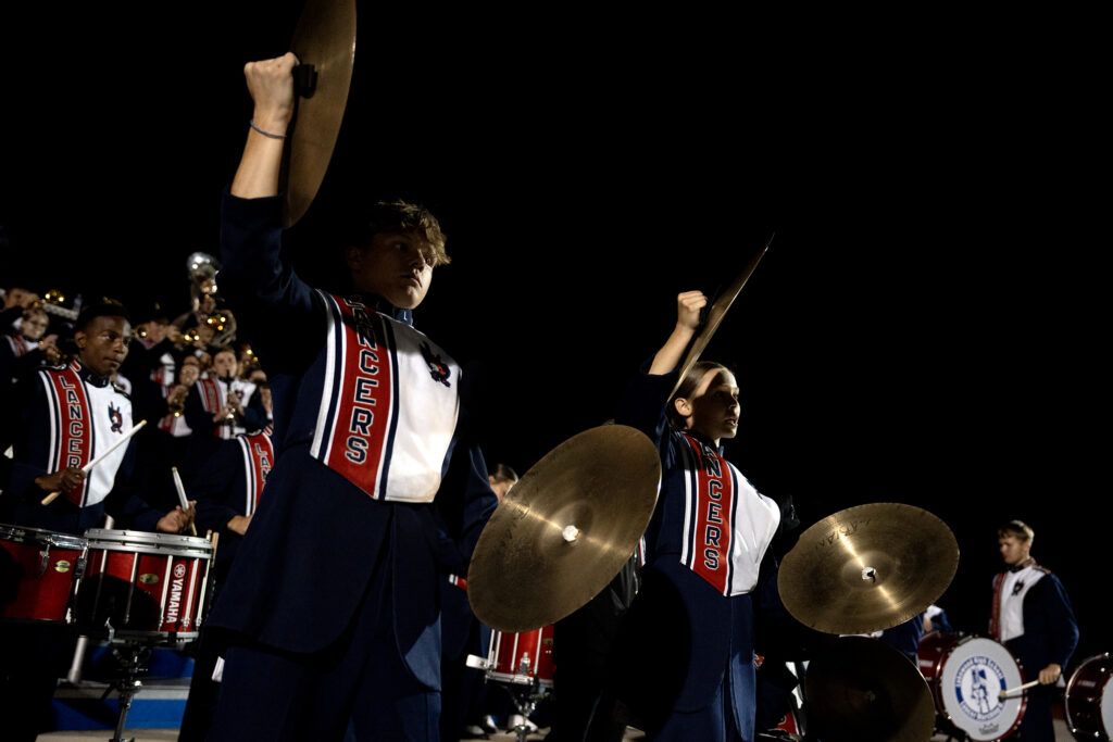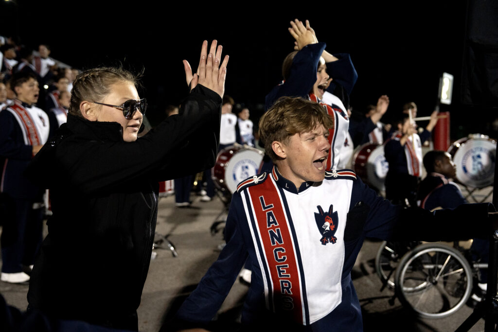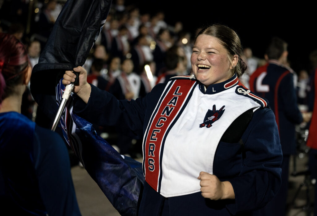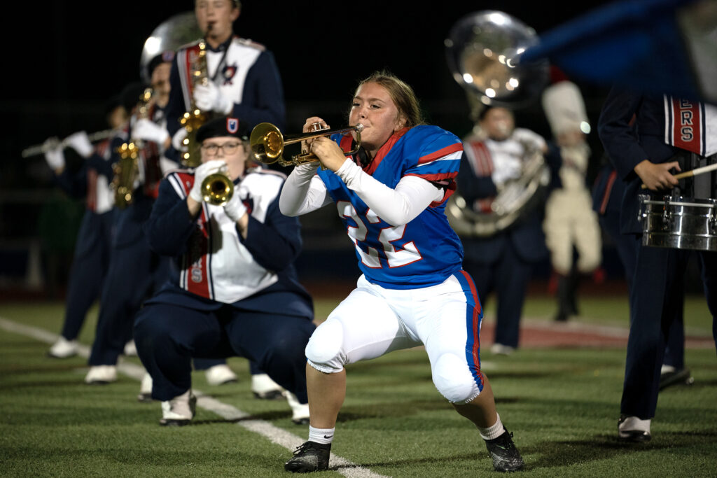 Not only is Abby Baker the kicker for the Lakewood Lancers, but she also plays trumpet in the marching band. Instead of going to the locker room at half time, Baker and the two other football players in the band take to the field for their halftime performance, Oct 17, 2025.
